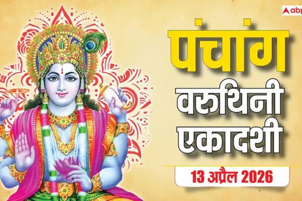 Hindi Panchang 13 अप्रैल 2026: 13 अप्रैल 2026 को वैशाख की वरुथिनी एकादशी है. धार्मिक मान्यताओं के अनुसार इस व्रत को करने से व्यक्ति के पिछले जन्मों के पाप भी नष्ट हो जाते हैं. कहा जाता है कि इस दिन किया गया पुण्य 1000 गायों के दान के बराबर फल देता है. इस दिन सोमवार…