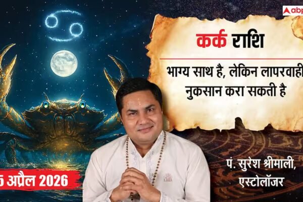 Aaj ka Kark Rashifal 15 April 2026: आज कर्क राशि के लिए दिन मिला-जुला रहेगा. चन्द्रमा का 9वें भाव में होना यह संकेत देता है कि भाग्य साथ तो देगा, लेकिन शुरुआत में कुछ रुकावटें आ सकती हैं. अगर आप जल्दी हार मान गए तो नुकसान आपका ही होगा. आज का गेम साफ है धैर्य…