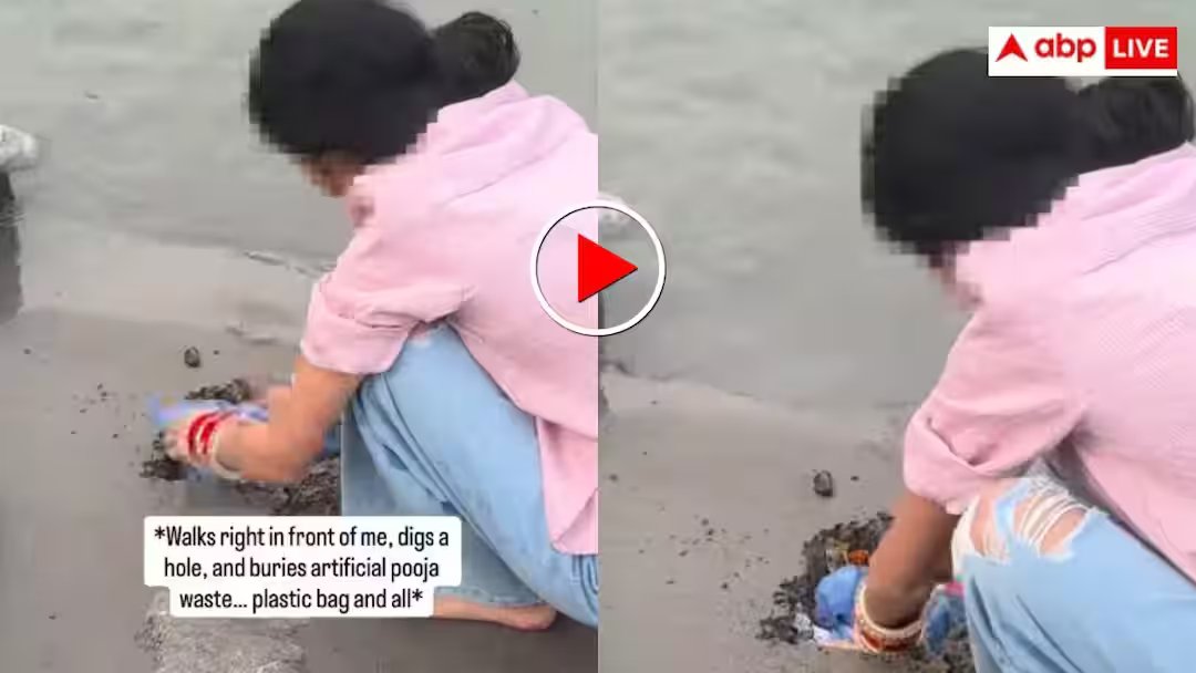 यह वीडियो ऋषिकेश के साई घाट का बताया जा रहा है. इसमें एक महिला गंगा किनारे रेत में छोटा सा गड्ढा खोदकर पूजा का कचरा दबाती दिखाई दे रही है. इस कचरे में प्लास्टिक जैसी चीजें भी शामिल थीं, जो पर्यावरण के लिए बेहद हानिकारक मानी जाती हैं. वीडियो को इंस्टाग्राम पर सिएरा लिलियन नाम की एक विदेशी महिला ने शेयर किया है. उन्होंने बताया कि वह गंगा किनारे बैठी थीं, तभी उन्होंने यह घटना देखी. उन्होंने महिला से सवाल करने की कोशिश भी की, लेकिन उस महिला ने उनकी बात को नजरअंदाज कर दिया.